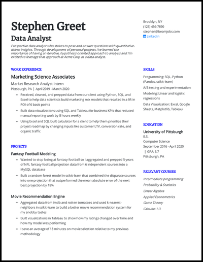 To help you optimize your job search, zipjob's team of career experts and former fortune 500 recruiters put together the best resume examples for more than 200 job titles that will impress hiring managers and pass the applicant tracking system (ats) scans. When deciding which resume format you should use, consider your professional history and the role you're applying for. Here are the quick hits for how to properly format your resume: You might also include a link to your online portfolio if you are applying to creative positions, for example. Contact information, resume summary, work experience, education, skills.